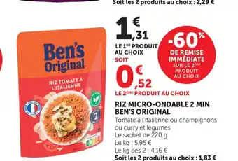 BEN'S ORIGINAL Riz micro-ondable 2 min offres et promotions en ligne chez Bi1