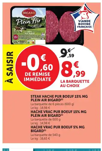 BIGARD Steak hache pur boeuf 15% mg plein air offres et promotions en ligne chez Bi1