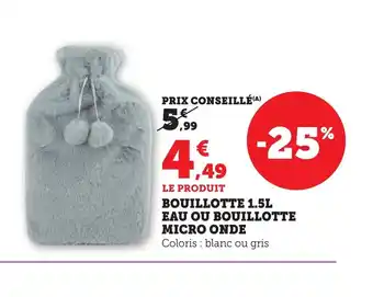 L'offre est disponible dans plusieurs magasins, vérifiez tous les produits pour obtenir le Bouillotte eau ou bouillotte micro onde le moins cher. Si vous souhaitez savoir si l'article est en vente avec une plus grosse remise dans un autre magasin, consultez la catégorie 'Supermarché'. Ces offres pourraient aussi vous intéresser : Bouillotte eau ou bouillotte micro onde, Bouillotte eau ou bouillotte micro onde & Bouillotte 1.5l eau ou bouillotte micro onde.