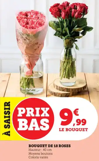 En plus de l'offre Bouquet de 18 roses, Bi1 propose une large gamme de produits. Consultez le Catalogue Bi1 hebdomadaire pour découvrir les meilleures offres et promotions. En plus de Bouquet de 18 roses, il y a aussi : Bouquet de 18 roses, Bouquet de 18 roses & Bouquet de 18 roses.
