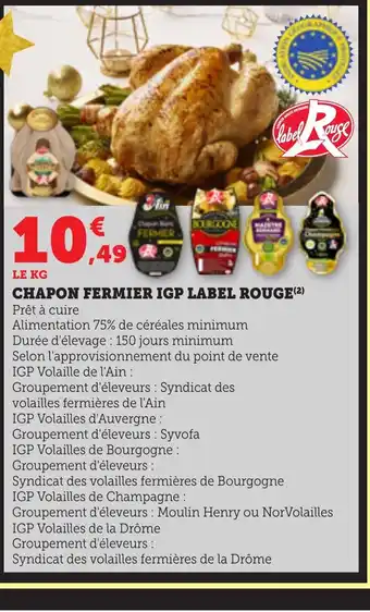 L'offre est disponible dans plusieurs magasins, vérifiez tous les produits pour obtenir le Chapon fermier igp label rouge le moins cher. Si vous souhaitez savoir si l'article est en vente avec une plus grosse remise dans un autre magasin, consultez la catégorie 'Supermarché'. Ces offres pourraient aussi vous intéresser : Chapon fermier label rouge igp, Chapon fermier label rouge igp & Chapon de pintade fermier label rouge igp.