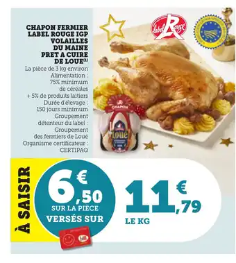 Chapon fermier label rouge igp volailles du maine pret a cuire de loue : offres et promos Bi1 à découvrir