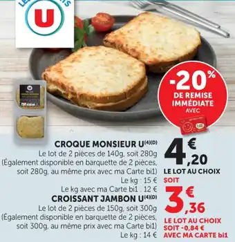 L'offre est disponible dans plusieurs magasins, vérifiez tous les produits pour obtenir le Croque monsieur u le moins cher. Si vous souhaitez savoir si l'article est en vente avec une plus grosse remise dans un autre magasin, consultez la catégorie 'Supermarché'. Ces offres pourraient aussi vous intéresser : Croque monsieur u, Croque monsieur u & Croque monsieur u.