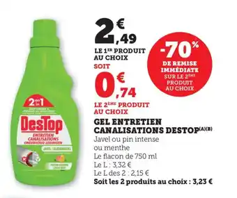En plus de l'offre DESTOP Gel entretien canalisations, Bi1 propose une large gamme de produits. Consultez le Catalogue Bi1 hebdomadaire pour découvrir les meilleures offres et promotions. En plus de DESTOP Gel entretien canalisations, il y a aussi : DESTOP Gel entretien canalisations, Destop - gel entretien canalisations & Gel entretien canalisations destop.