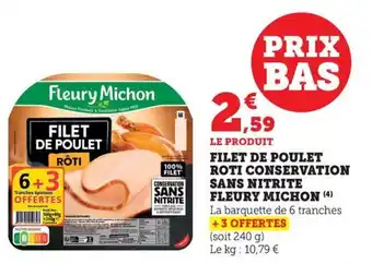 Filet de poulet roti conservation sans nitrite fleury michon 240 g