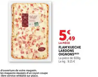 L'offre est disponible dans plusieurs magasins, vérifiez tous les produits pour obtenir le Flam'kueche lardons oignons le moins cher. Si vous souhaitez savoir si l'article est en vente avec une plus grosse remise dans un autre magasin, consultez la catégorie 'Supermarché'. Ces offres pourraient aussi vous intéresser : Lardons,crème fraiche,oignons, Spaetzle aux lardons, crème et oignons & Spaetzle aux lardons, crème et oignons.