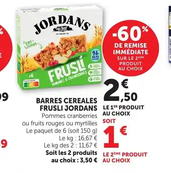 JORDANS Barres cereales frusli : offres et promos Bi1 à découvrir