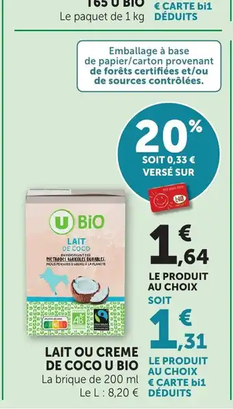 Lait ou creme de coco u bio : offres et promos Bi1 à découvrir