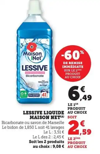 En plus de l'offre Lessive liquide maison net, Bi1 propose une large gamme de produits. Consultez le Catalogue Bi1 hebdomadaire pour découvrir les meilleures offres et promotions. En plus de Lessive liquide maison net, il y a aussi : MAISON NET Lessive liquide, Lessive liquide mains & machines savon de marseille & aloe vera maison net & Lessive liquide.