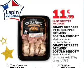 LOEUL&PIRIOT Quart de rable et gigolette de lapin offres et promotions en ligne chez Bi1