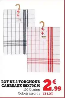 L'offre est disponible dans plusieurs magasins, vérifiez tous les produits pour obtenir le Lot de 2 torchons carreaux 50x70cm le moins cher. Si vous souhaitez savoir si l'article est en vente avec une plus grosse remise dans un autre magasin, consultez la catégorie 'Supermarché'. Ces offres pourraient aussi vous intéresser : Lot de 2 torchons carreaux, Lot de 2 torchons carreaux & Lot de 2 torchons.