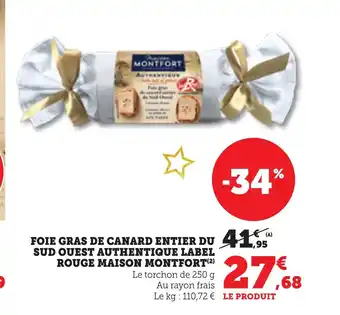 MAISON MONTFORT Foie gras de canard entier du sud ouest authentique label rouge : offres et promos Bi1 à découvrir