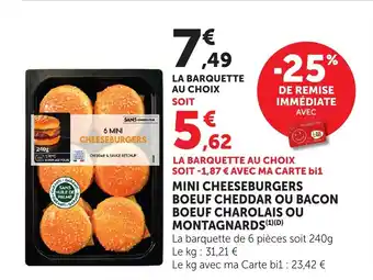 Offre Mini cheeseburgers boeuf cheddar ou bacon boeuf charolais ou montagnards chez Bi1