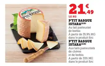 L'offre est disponible dans plusieurs magasins, vérifiez tous les produits pour obtenir le P'tit basque istara le moins cher. Si vous souhaitez savoir si l'article est en vente avec une plus grosse remise dans un autre magasin, consultez la catégorie 'Supermarché'. Ces offres pourraient aussi vous intéresser : P'tit basque istara, Istara - p'tit basque brebis d'istara & P'TIT BASQUE 35.9% MAT.GR.