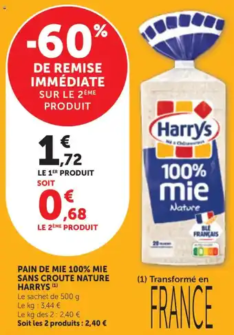 Pain de mie 100% mie sans croute nature harrys 500 g