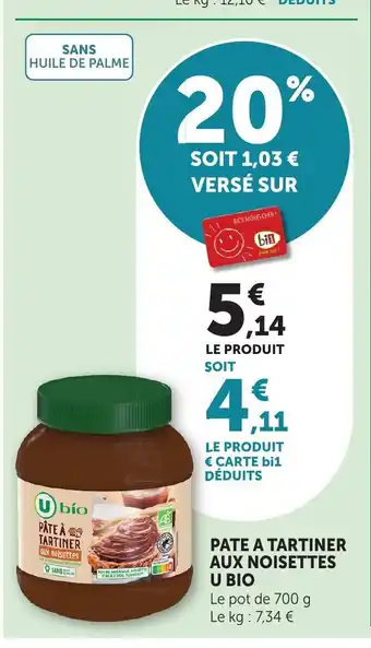 Offre Pate a tartiner aux noisettes u bio chez Bi1