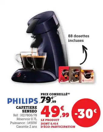 L'offre est disponible dans plusieurs magasins, vérifiez tous les produits pour obtenir le PHILIPS Cafetiere senseo le moins cher. Si vous souhaitez savoir si l'article est en vente avec une plus grosse remise dans un autre magasin, consultez la catégorie 'Supermarché'. Ces offres pourraient aussi vous intéresser : PHILIPS Cafetiere senseo, Philips cafetière senseo & Cafetiere senseo philips.