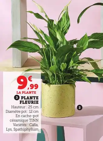 L'offre est disponible dans plusieurs magasins, vérifiez tous les produits pour obtenir le Plante 3 plante fleurie le moins cher. Si vous souhaitez savoir si l'article est en vente avec une plus grosse remise dans un autre magasin, consultez la catégorie 'Supermarché'. Ces offres pourraient aussi vous intéresser : Plante fleurie, Plante fleurie & Plante fleurie.