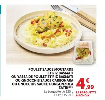 Poulet sauce moutarde et riz basmati ou yassa de poulet et riz basmati ou gnocchis sauce carbonara 320 g