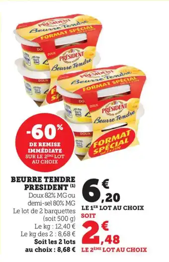 L'offre est disponible dans plusieurs magasins, vérifiez tous les produits pour obtenir le PRESIDENT Beurre tendre le moins cher. Si vous souhaitez savoir si l'article est en vente avec une plus grosse remise dans un autre magasin, consultez la catégorie 'Supermarché'. Ces offres pourraient aussi vous intéresser : Beurre tendre president, Beurre tendre president & Beurre tendre president.