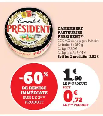 PRESIDENT Camembert pasteurise : offres et promos Bi1 à découvrir