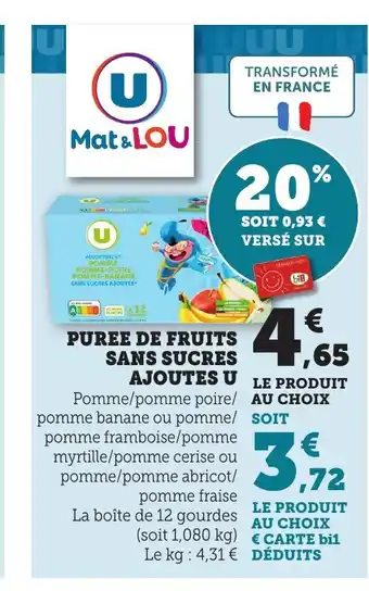 Puree de fruits sans sucres ajoutes u offres et promotions en ligne chez Bi1