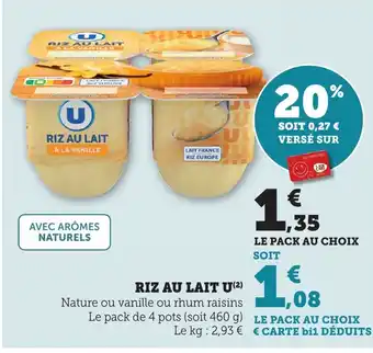 L'offre est disponible dans plusieurs magasins, vérifiez tous les produits pour obtenir le Riz au lait le moins cher. Si vous souhaitez savoir si l'article est en vente avec une plus grosse remise dans un autre magasin, consultez la catégorie 'Supermarché'. Ces offres pourraient aussi vous intéresser : Riz au lait u, U Riz au lait & Riz au lait Vanille.