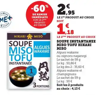 En plus de l'offre Soupe instantanee miso tofu hikari miso, Bi1 propose une large gamme de produits. Consultez le Catalogue Bi1 hebdomadaire pour découvrir les meilleures offres et promotions. En plus de Soupe instantanee miso tofu hikari miso, il y a aussi : Soupe instantanee miso tofu hikari miso, Soupe instantanee miso tofu hikari miso & Soupe instantanee miso tofu hikari miso.