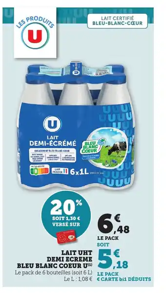 U Lait uht demi ecreme bleu blanc coeur 6 l