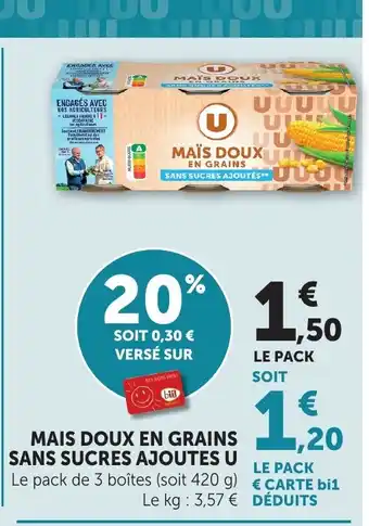U Mais doux en grains sans sucres ajoutes offres et promotions en ligne chez Bi1