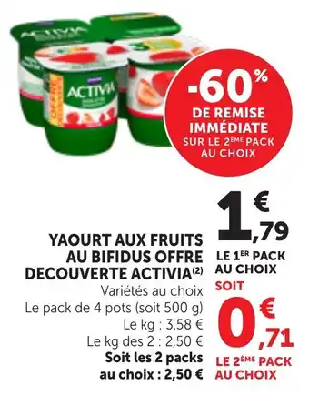 Yaourt aux fruits au bifidus offre decouverte activia 500 g
