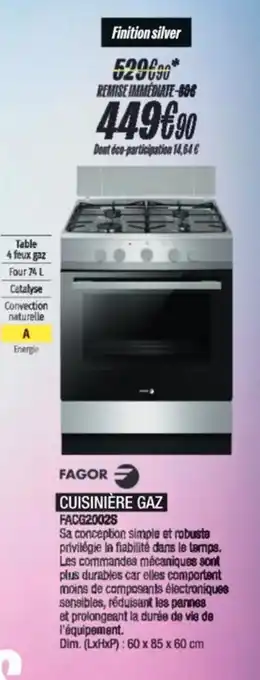 Offre FAGOR Cuisinière gaz facg2002s chez Blanc Brun