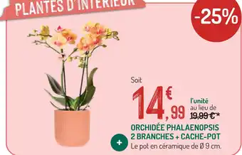 Quand Orchidée phalaenopsis 2 branches + cache-pot sera-t-elle en promotion ? Ou encore : "Est-ce que Orchidée phalaenopsis 2 branches + cache-pot sera en promotion la semaine prochaine ?" C’est une question fréquente. Beaucoup de consommateurs établissent leur liste de courses à l’avance. Pour cette raison, nous mettons en ligne les informations sur les promos à venir dès qu’elles sont connues. Cela vous permet de planifier vos achats et de faire de bonnes affaires. Consultez régulièrement notre site pour savoir si une nouvelle promo sur Orchidée phalaenopsis 2 branches + cache-pot arrive bientôt chez Botanic.Questions fréquemment posées au sujet de Orchidée phalaenopsis 2 branches + cache-pot