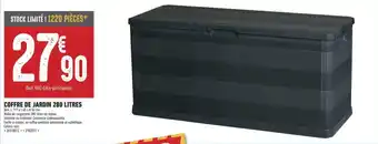 L'offre est disponible dans plusieurs magasins, vérifiez tous les produits pour obtenir le Coffre de jardin le moins cher. Si vous souhaitez savoir si l'article est en vente avec une plus grosse remise dans un autre magasin, consultez la catégorie 'Bricolage'. Ces offres pourraient aussi vous intéresser : Coffre de jardin, COFFRE DE JARDIN T 130 & Coffre de jardin en résine.