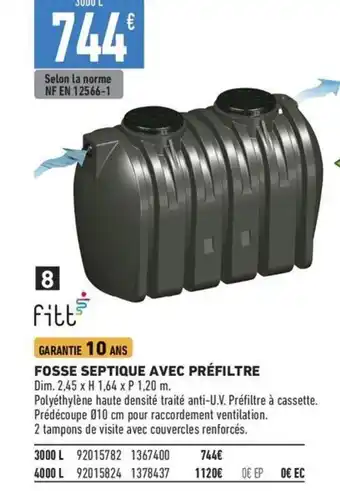 Offre Fosse septique avec préfiltre chez Brico Cash