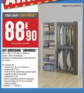 Actuellement en offre chez Brico Cash : Kit dressing armonia ✅ Valable du 7-01 au 22-01.