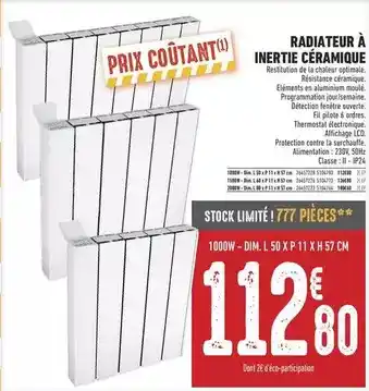 Découvrez les produits les moins chers parmi toutes les offres ! Si vous voulez savoir si Brico Cash propose la meilleure remise pour Radiateur à inertie céramique, comparez-la sur la page thèmes ou avec d'autres magasins.