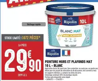 Actuellement en offre chez Brico Cash : Ripolin - peinture murs et plafonds mat 10 l blanc ✅ Valable du 3-02 au 5-02.