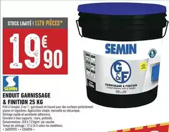 Offre Semin - enduit garnissage & finition 25 kg chez Brico Cash