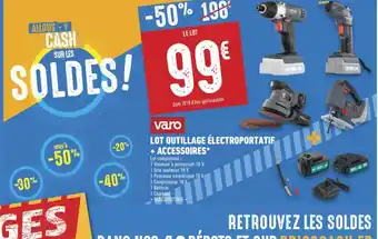 Actuellement en offre chez Brico Cash : VARO Lot outillage électroportatif + accessoires ✅ Valable du 7-01 au 22-01.