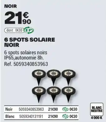Offre 6 SPOTS SOLAIRE NOIR chez Brico Dépôt