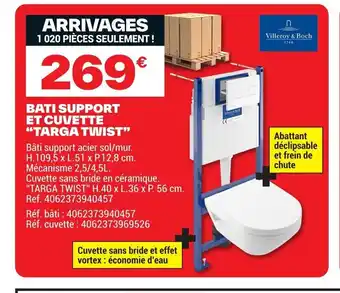 Actuellement en offre chez Brico Dépôt : Bati support et cuvette targa twist ✅ Valable du 3-04 au 16-04.