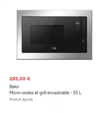 Actuellement en offre chez Brico Dépôt : BEKO Micro-ondes et grill encastrable ✅ Valable du 11-02 au 22-02.