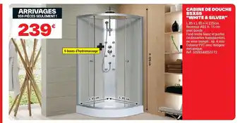 Actuellement en offre chez Brico Dépôt : Cabine de douche 85x85 white & silver ✅ Valable du 3-04 au 16-04.