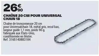 Actuellement en offre chez Brico Dépôt : Chaîne 20 cm pour universal chain 18 ✅ Valable du 27-03 au 12-06.