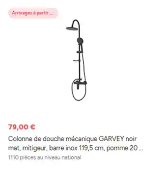 Cette Colonne de douche mécanique GARVEY noir mat, mitigeur, barre inox est disponible dans les magasins ci-dessous en fonction de votre emplacement configuré: