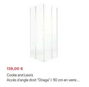 L'offre est disponible dans plusieurs magasins, vérifiez tous les produits pour obtenir le COOKE AND LEWIS Accès d'angle droit Onega en verre le moins cher. Si vous souhaitez savoir si l'article est en vente avec une plus grosse remise dans un autre magasin, consultez la catégorie 'Bricolage'. Ces offres pourraient aussi vous intéresser : COOKE AND LEWIS Accès d'angle droit Onega, Accès d'angle droit Garian en verre transparent & Accès d'angle droit Garian en verre transparent.