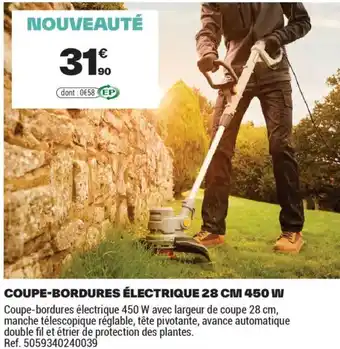 Actuellement en offre chez Brico Dépôt : COUPE-BORDURES ÉLECTRIQUE ✅ Valable du 25-03 au 12-06.