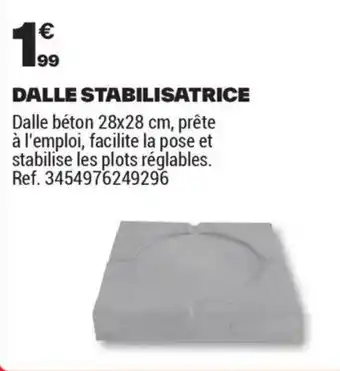 Le prix de l'offre DALLE STABILISATRICE se trouve également en haut de la page, ainsi que la date à laquelle l'offre est disponible. Vous pouvez également vérifier les prix dans le Catalogue Brico Dépôt actuel ou sur le site Internet de Brico Dépôt. Les offres vous permettent d'acheter les produits Brico Dépôt au prix le plus bas.