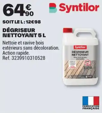 L'offre est disponible dans plusieurs magasins, vérifiez tous les produits pour obtenir le DÉGRISEUR NETTOYANT le moins cher. Si vous souhaitez savoir si l'article est en vente avec une plus grosse remise dans un autre magasin, consultez la catégorie 'Bricolage'. Ces offres pourraient aussi vous intéresser : Nettoyant contact 3 en 1, Nettoyant toitures & Nettoyant freins.
